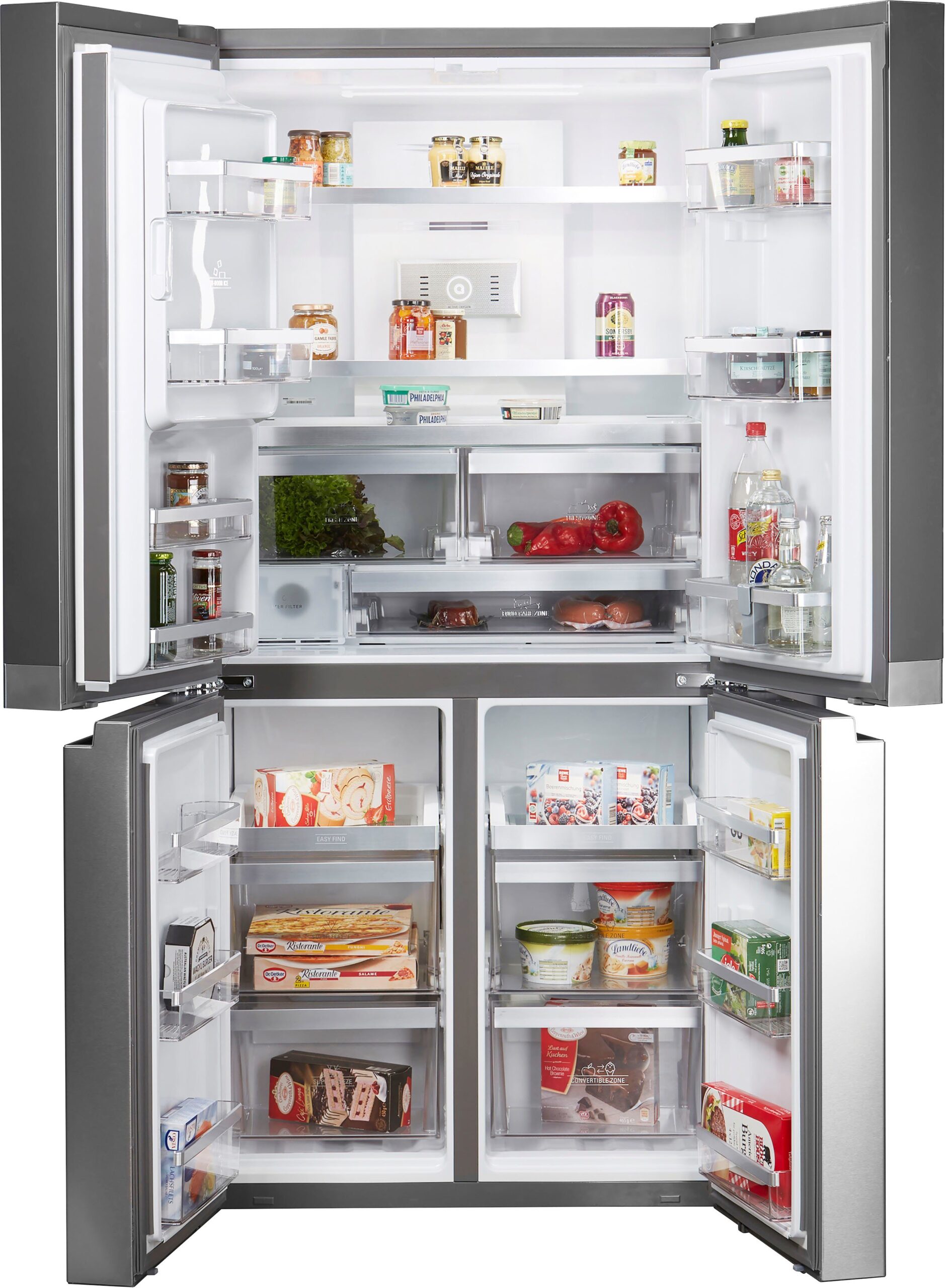 | Top-Features | Abtauautomatik Active Fresh + Active Freeze Active-Oxygen-Technologie Cool-Care-Zone Eis-, Crushed-Ice- und Wasserspender Kindersicherung LED-Innenbeleuchtung Metal Cooling Multipower-Inverter-Kompressor Urlaubsschaltung |