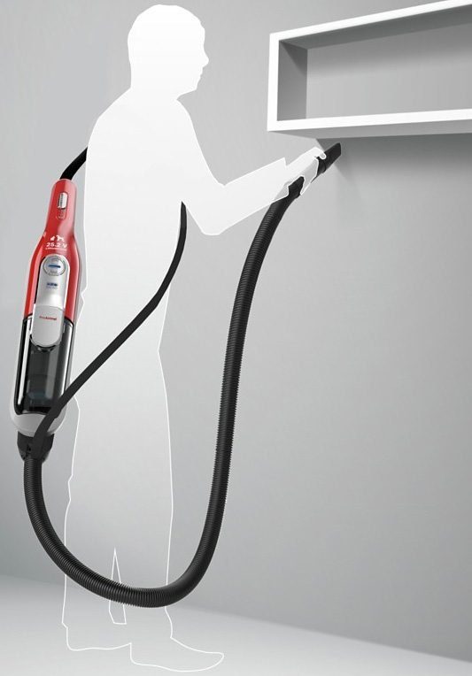| Weitere Vorteile | Flexibles kabelloses Staubsaugen um und unter Möbeln dank extrem beweglichem Düsengelenk und ansteckbarem Rundum komfortabel und einfach anzuwenden, zu verstauen und zu reinigen dank geringem Gewicht (3kg)- |