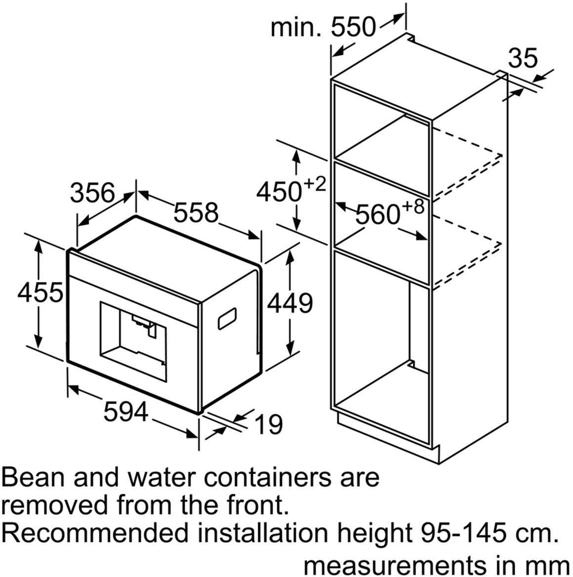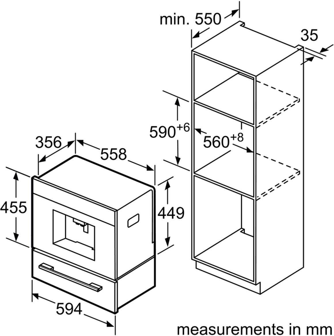 | Nischenbreite Kaffeevollautomat maximal | 55,8 cm |