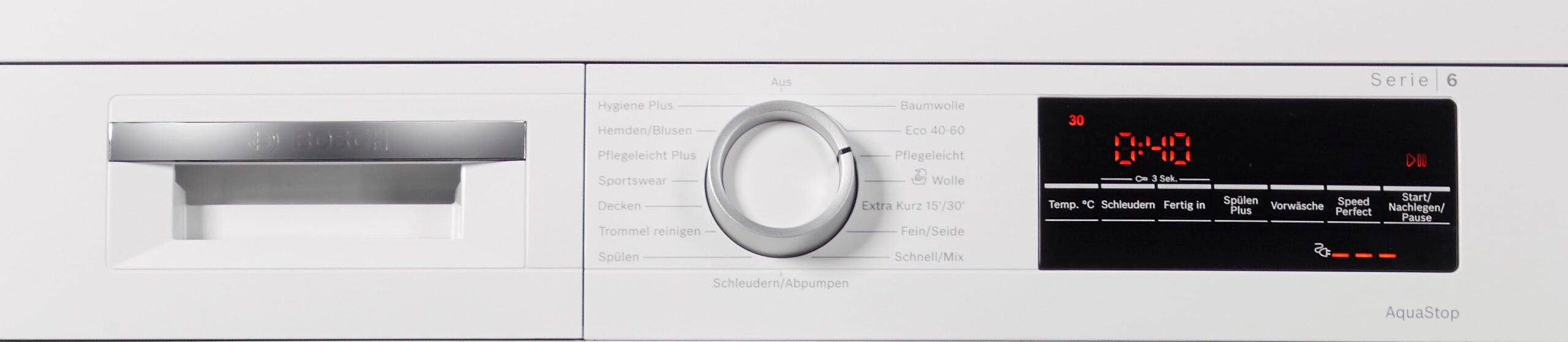 | Top-Features | ActiveWaterPlus Mengenautomatik AntiVibration Design AquaStop EcoSilence Drive™ Endzeitvorwahl Kindersicherung LED-Display Nachlegefunktion Programmablaufanzeige Schaumsensor SpeedPerfect Temperatureinstellung Trommelreinigung VarioSoft Trommel |