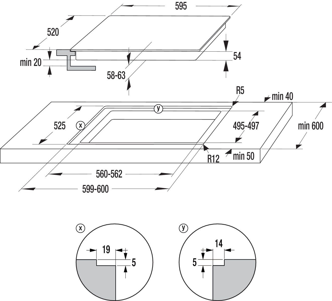 | Tiefe Kochfeld | 52 cm |