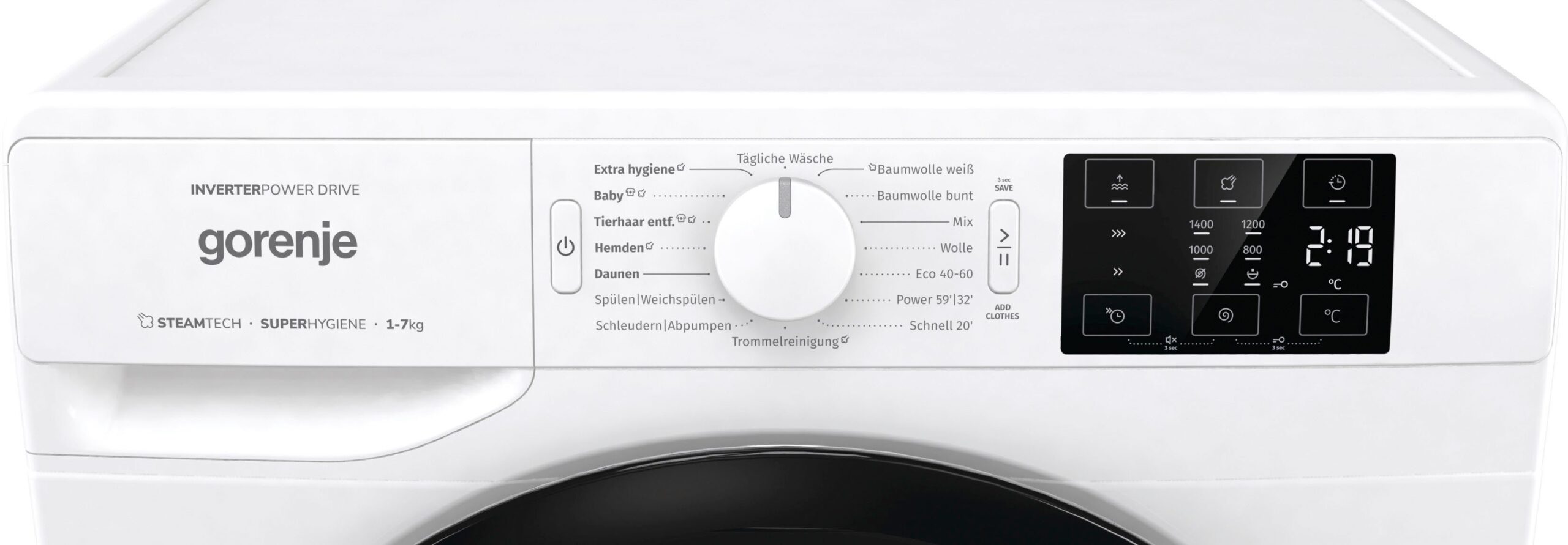 | Zusatzfunktionen | Beladungserkennung Kindersicherung Signalton am Programmende Variable Schleuderdrehzahl |
