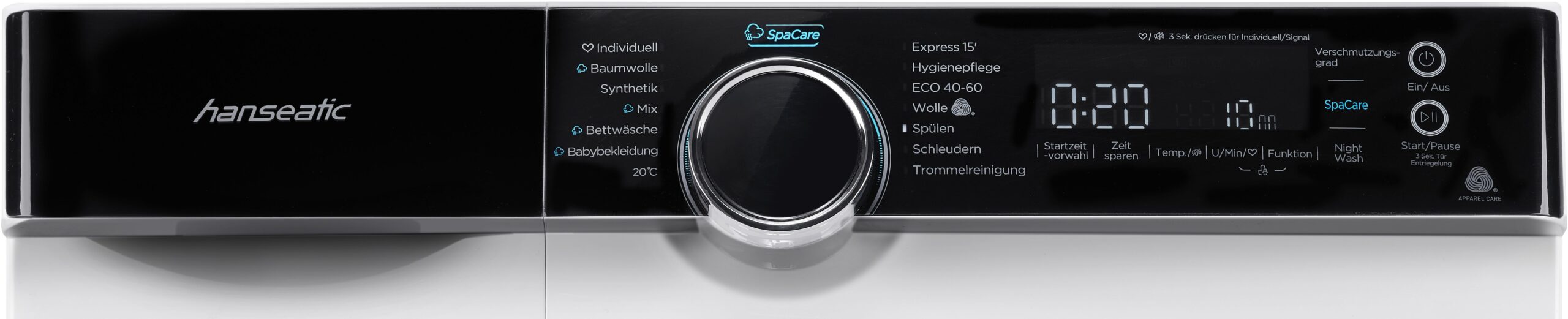 | Programme | 20°C Babybekleidung Baumwolle Bettwäsche ECO 40-60 Express15′ Individuell Mix Schleudern Spülen Synthetik Trommelreinigung Wolle |