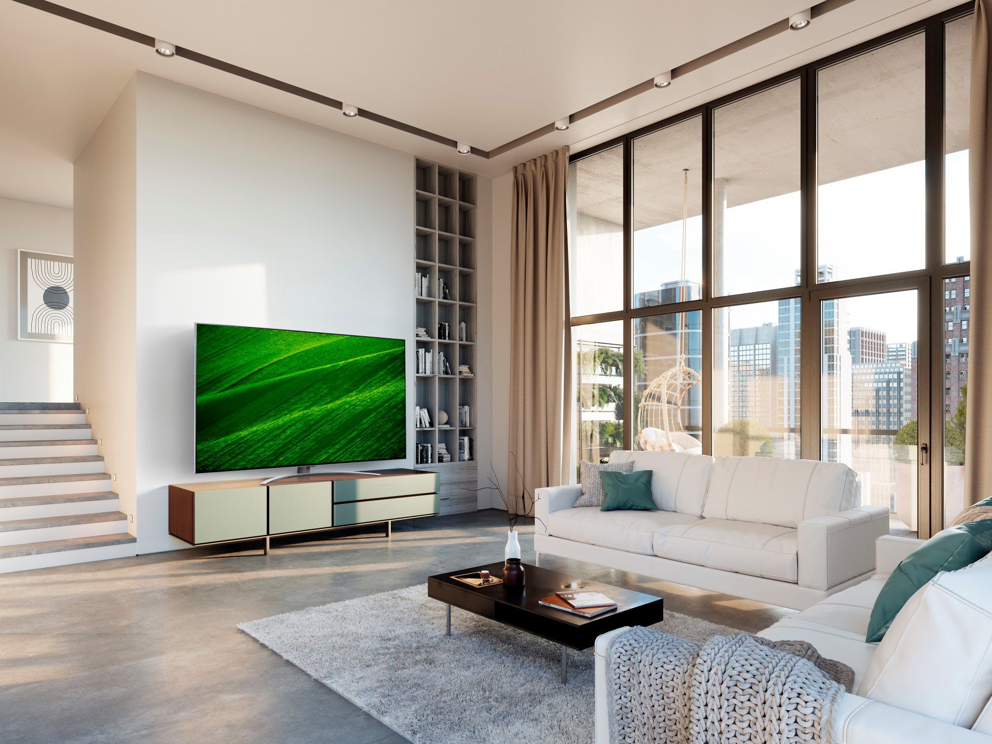 | Bildverbesserungssysteme | 4K Upscaler AI Brightness Control AI Picture Pro Active HDR Autokalibrierung Dimming Pro Dynamic Tone Mapping Filmmaker Mode™ HDR10 Pro HLG Nano Cell+ Display Quantum Dot automatische Sensor-Helligkeitssteuerung |