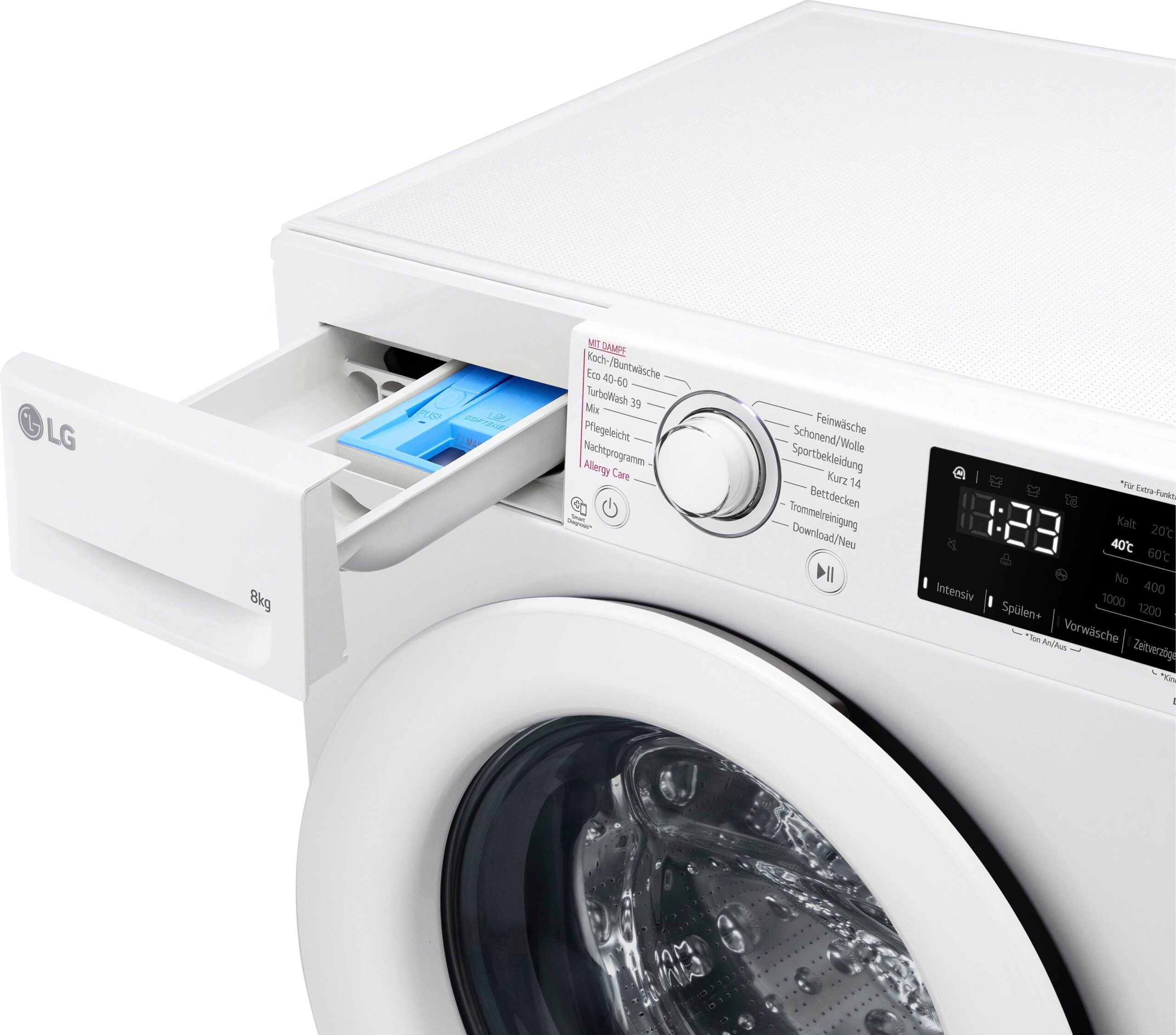 Dampf-Funktion Ihre LG Waschmaschine mit Dampffunktion entfernt bis zu 99,9 % aller Allergene mit nur einem Waschgang – eine große Erleichterung im Alltag von Allergikern.