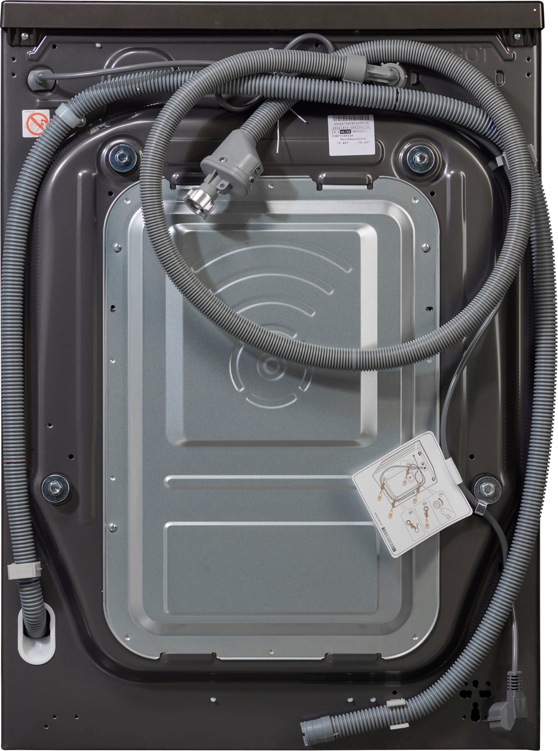 | Lieferumfang | Bedienungsanleitung, Kaltwasserversorgungsschlauch, Schraubenschlüssel, Kappen zur Abdeckung der Transportschraubenöffnungen, Gleitschutzplatten (Optional), Winkelschlauchführung zum Anschließen des Ablaufschlauchs, Befestigungsband (Opt.) |