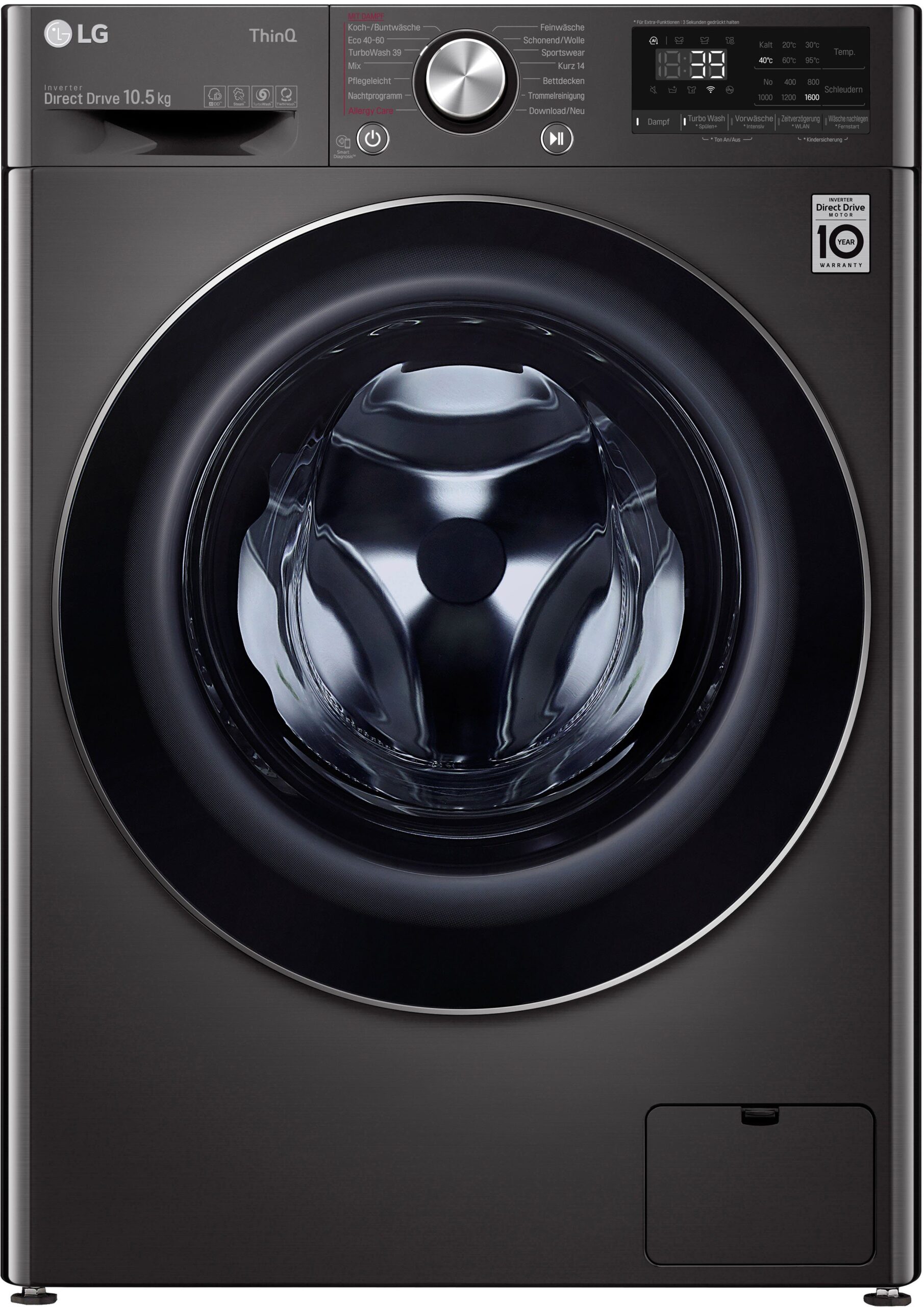 LG Waschmaschine F6WV710P2S, 10,5 kg, 1600 U/min, TurboWash® – Waschen in nur 39 Minuten