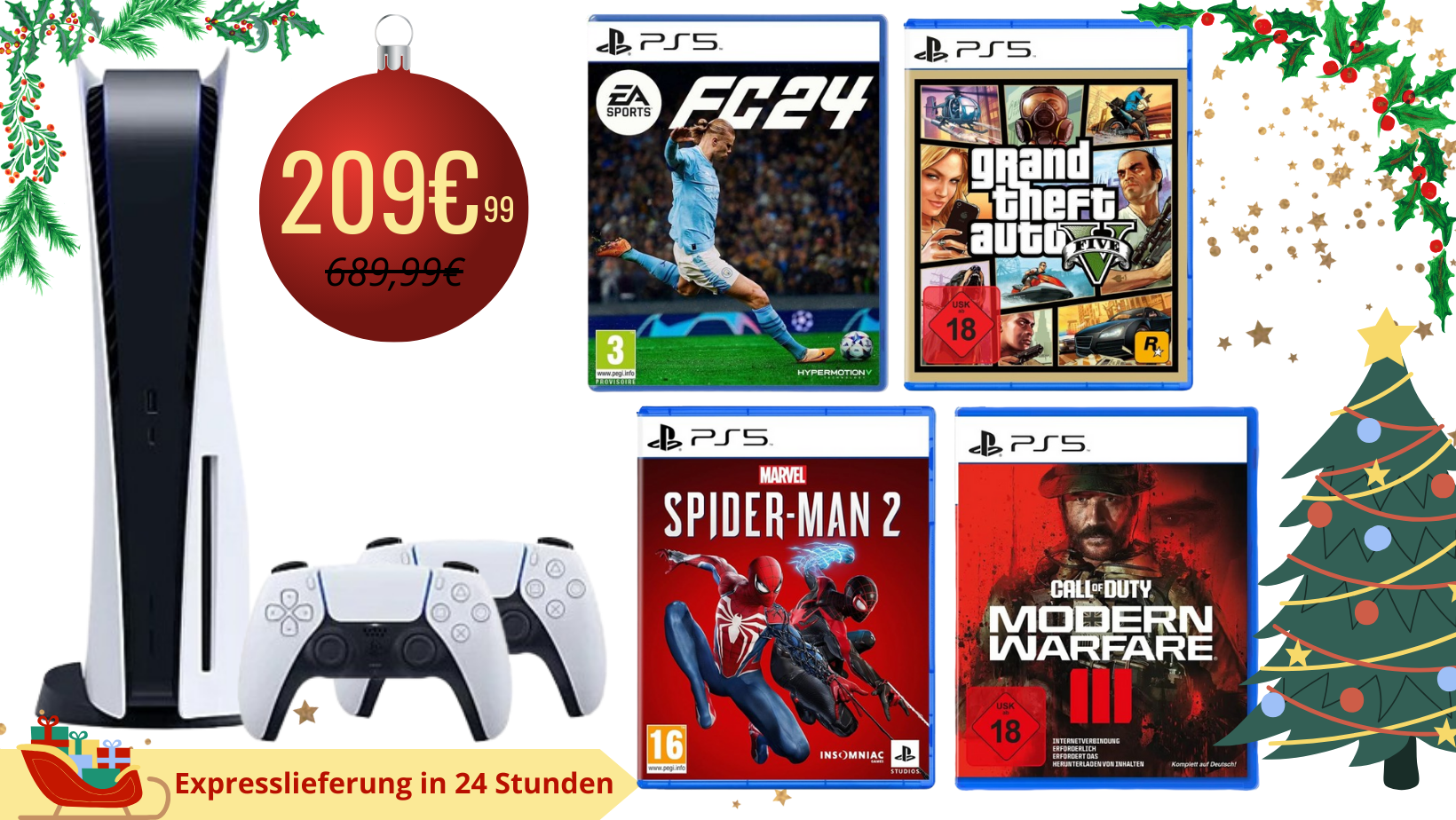 PlayStation 5 Disk Edition inkl. 2. Controller + 4 spiele