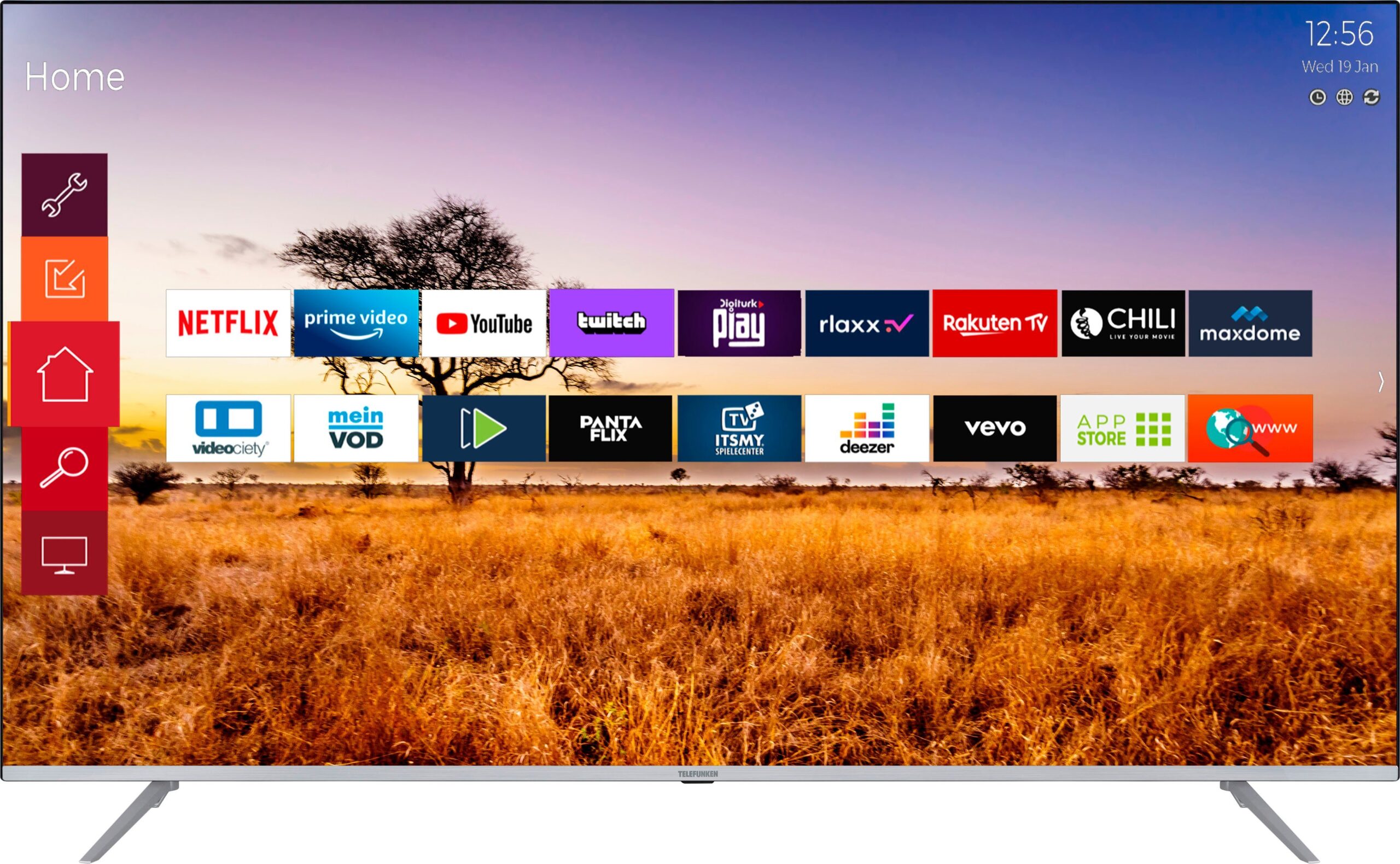 | Verfügbare Apps | Amazon Prime Video App Store Chili Deezer Maxdome Netflix Rakuten TV Videociety YouTube twitch |